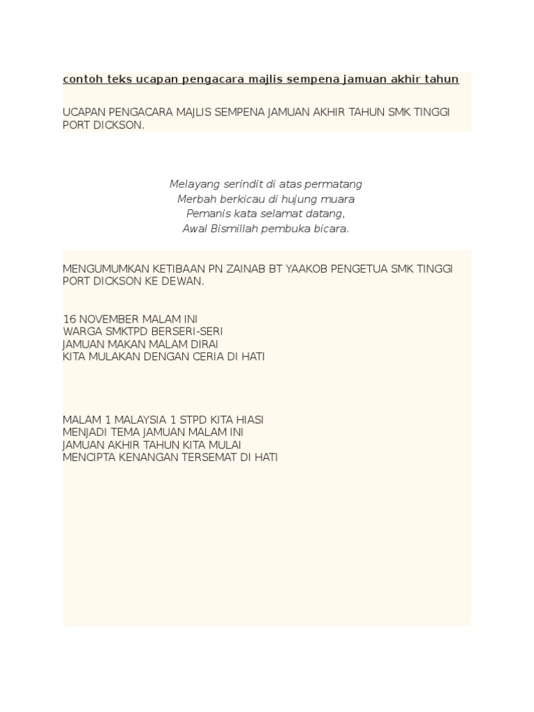 Related : Contoh Teks Ucapan Pengacara Majlis - Doc Contoh Teks Ucapan Pengacara Majlis Sempena Jamuan Saadiah M Academia Edu / Pihak majlis serta seluruh warga sk batang kali, turut sama merakamkan ucapan terima kasih yang tidak terhingga kepada seluruh hadirin dan hadirat khususnya kepada..