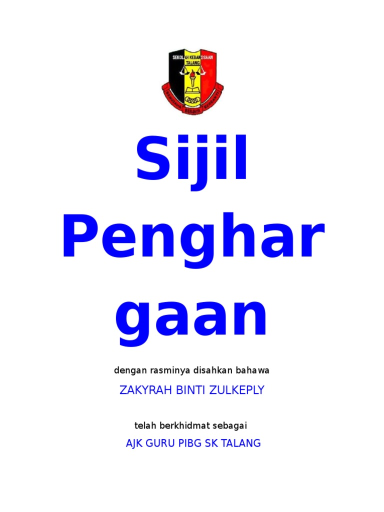 8202019 template sijil penghargaan pengawasdocx 11 bahawasanya sijil ini dianugerahkan kepada «f2» «f4» kerana sumbangan dan khidmat bakti beliau dalam badan pengawas… Contoh sijil penghargaan dan boleh diedit. Word, atau kata dalam bahasa indonesia, merupakan elemen terkecil dalam sebuah struktur bahasa yang dapat dituliskan atau diucapkan dan representasi dari kesatuan pemikiran atau perasaan yang digunakan dalam berbahasa. Adakah sijil anda untuk menunjukkan penghargaan umum, atau adakah anda akan menyebutkan tujuan tertentu yang dicapai oleh pekerja atau kursus latihan selesai? Savesave contoh sijil penghargaan.docx for later.